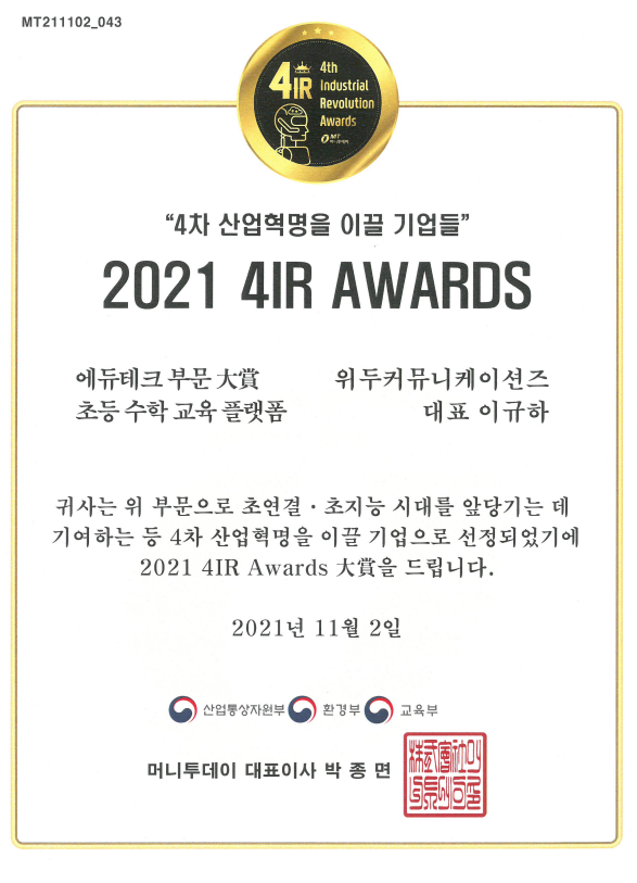 2021 4IR AWARDS 대상 페이지 정보 작성자 WeDu 댓글 0건 조회 11,148회 작성일 21-12-31 13:01 본문 2021-11-02 2021 4IR AWARDS 대상 머니투데이 List Previous2021 소년한국 우수 어린이 도서 22.01.06 Next2020 소년한국 우수 어린이 도서 선정 21.12.31