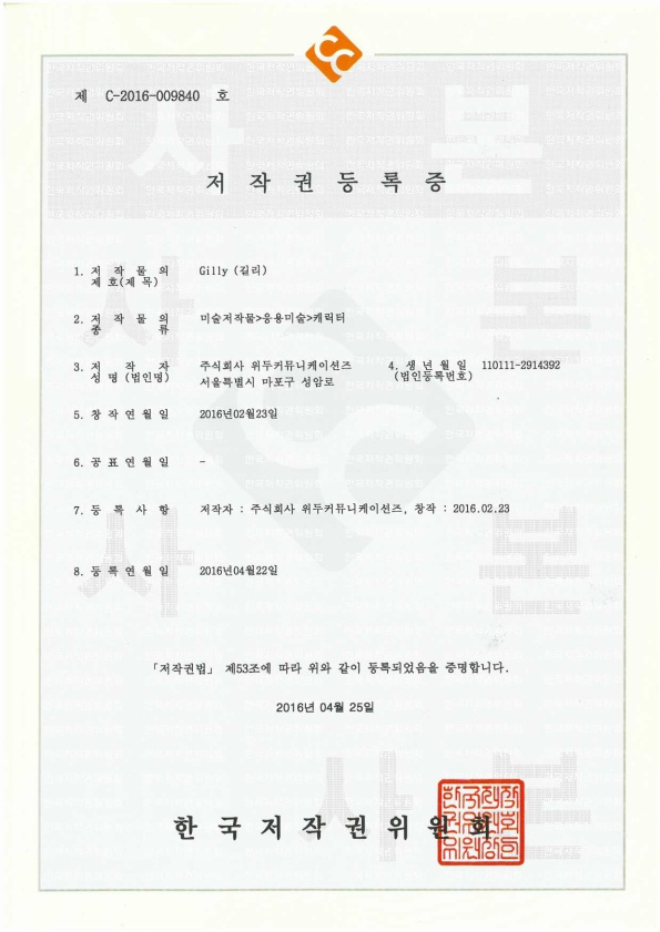 [한국/저작권] 길리 페이지 정보 작성자 WeDu 댓글 0건 조회 6,420회 작성일 19-05-30 19:07 본문 2016-04-22 저작권 C-2016-009840 길리 / 미술저작물>응용미술>캐릭터 List Previous[한국/저작권] 나무트 19.05.30 Next[한국/저작권] 리안의 수학 모험 19.05.30