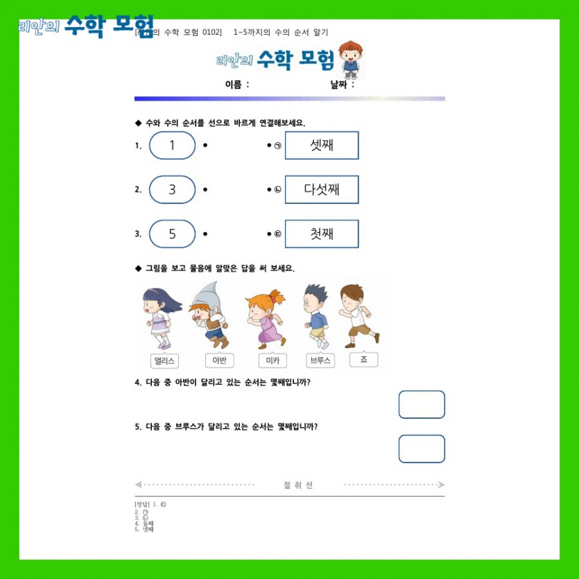 학습지는 주 1회 리안의 수학 모험 블로그에 업데이트됩니다.